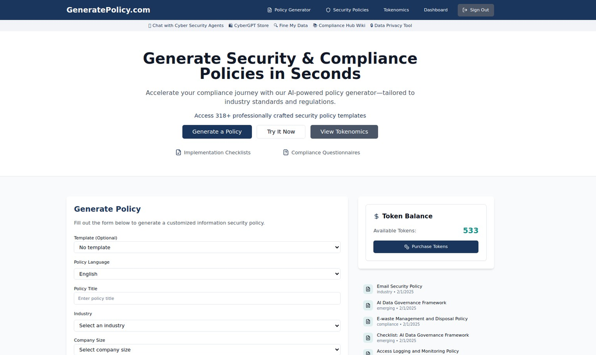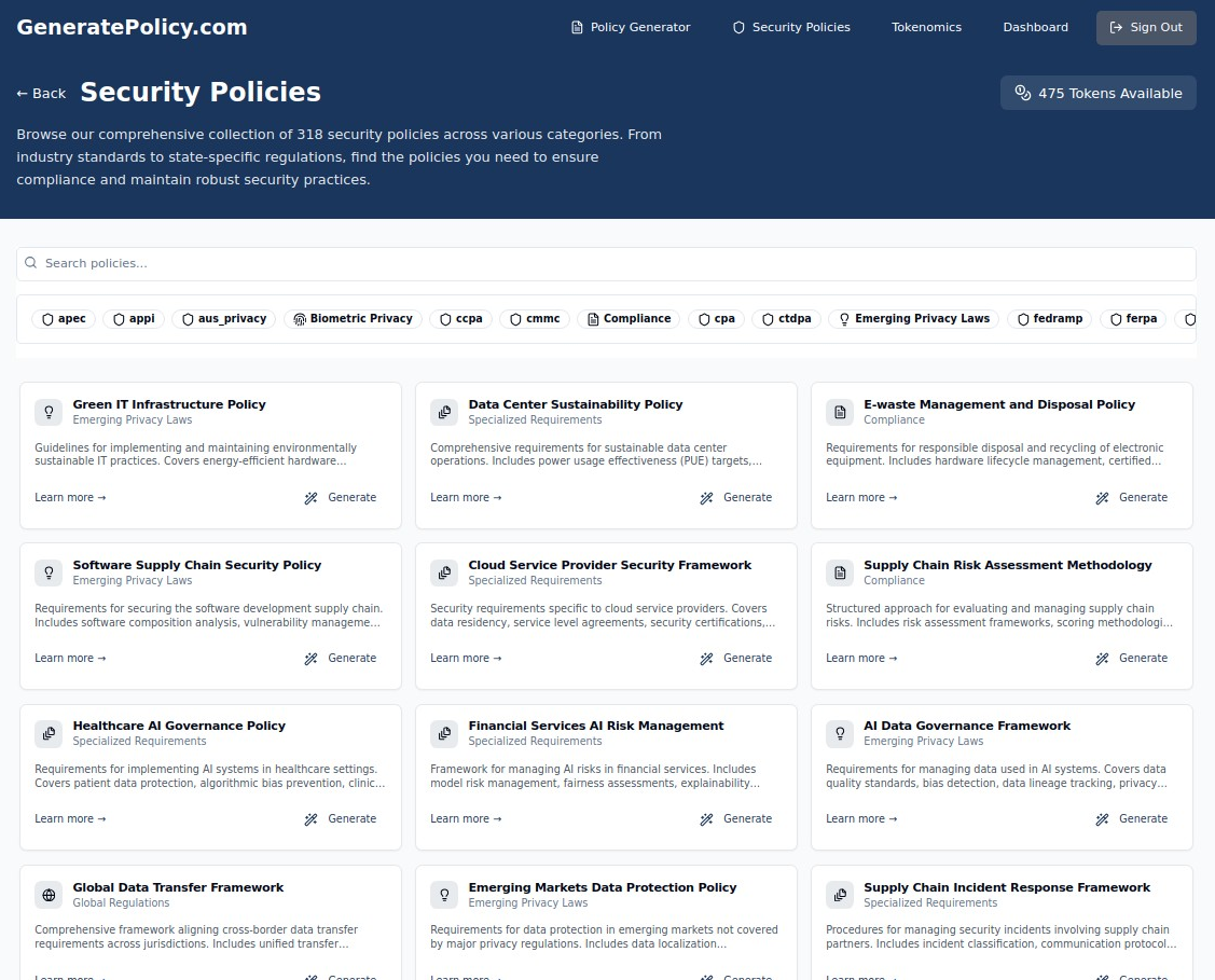 In the fast-evolving landscape of cybersecurity, organizations are required to maintain robust information security policies to comply with regulations, mitigate risks, and ensure data protection. However, drafting and updating security policies can be a tedious and time-consuming process. That’s where GeneratePolicy.com comes in—your AI-driven solution for on-demand Information Security Policy Generation.